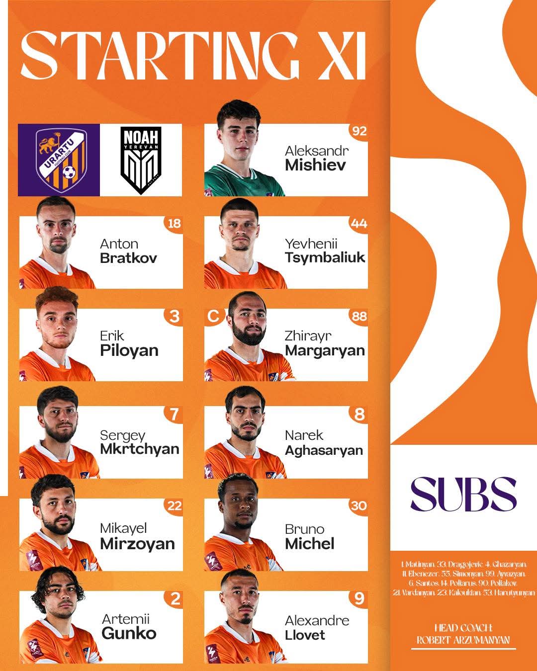 Ֆաստեքս Պրեմիեր Լիգայի իններորդ մրցափուլի շրջանակում` «Ուրարտու»-ն տանը կընդունի Սանդրո Պերկովիչի «Նոա»-ին: Հանդիպման մեկնարկը ժամը` 20:00-ին: