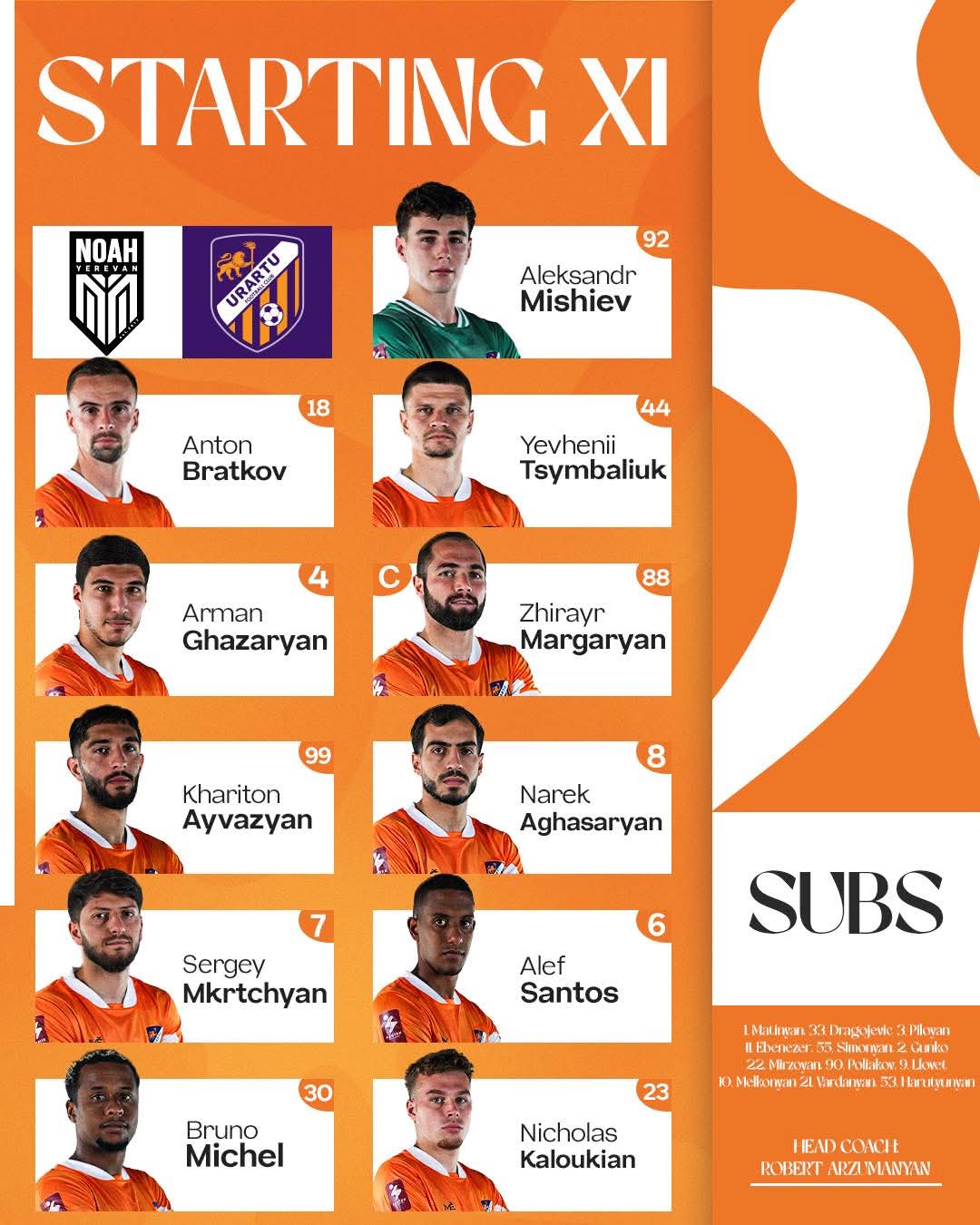 Ֆաստեքս Պրեմիեր Լիգայի 10-րդ տուրի շրջանակում Երևանի «Նոա»-ն Վազգեն Սարգսյանի անվան «Հանրապետական» մարզադաշտում կընդունի Ռոբերտ Արզումանյանի «Ուրարտու»-ին: Թիմերն հանդիպել են նաև նախորդ տուրում որն ավարտվեց ոչ-ոքի (0:0) արդյունքով: Մեկնարկը 19:00-ին: