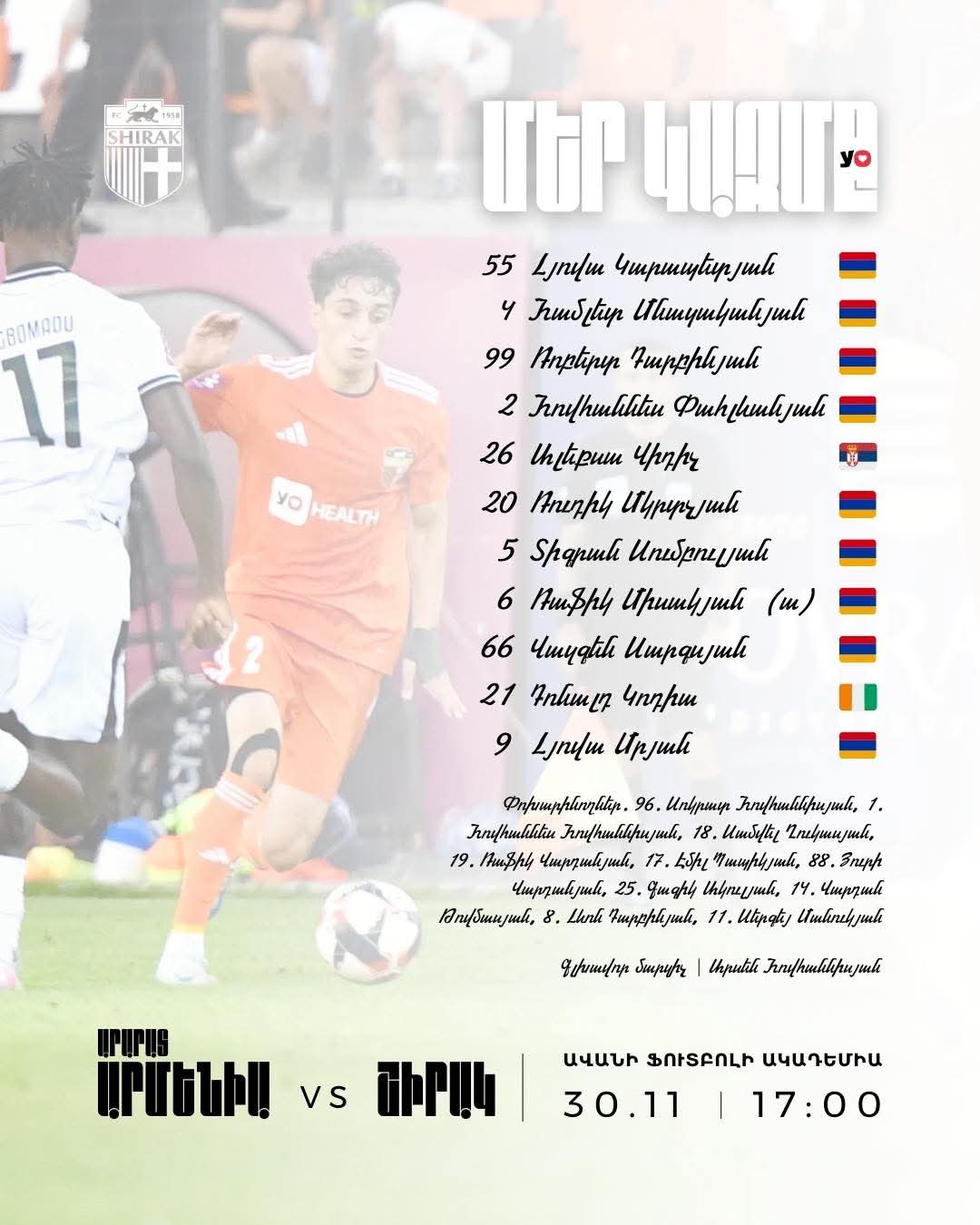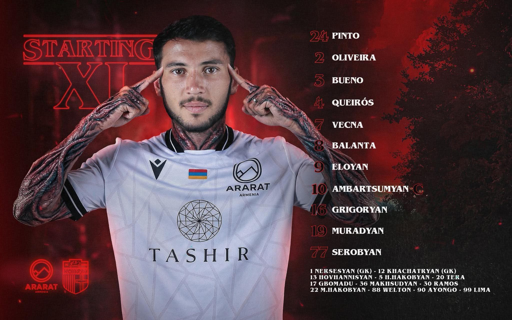 Ֆաստեքս Պրեմիեր Լիգայի 15-րդ տուրի շրջանակում` «Արարատ-Արմենիա»-ն 2025 թվականի տնային վերջին խաղում կընդունի Գյումրիի «Շիրակին»: