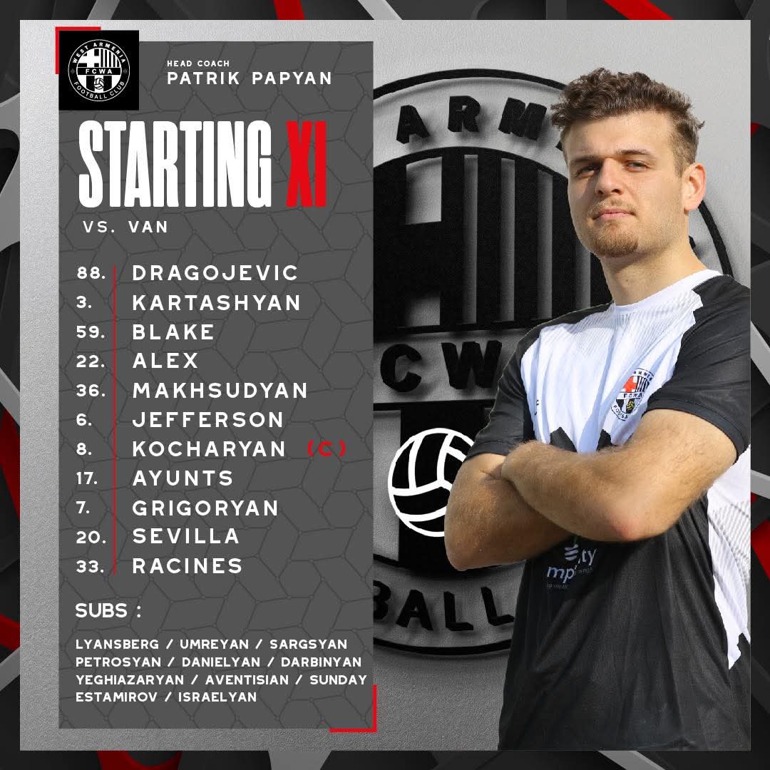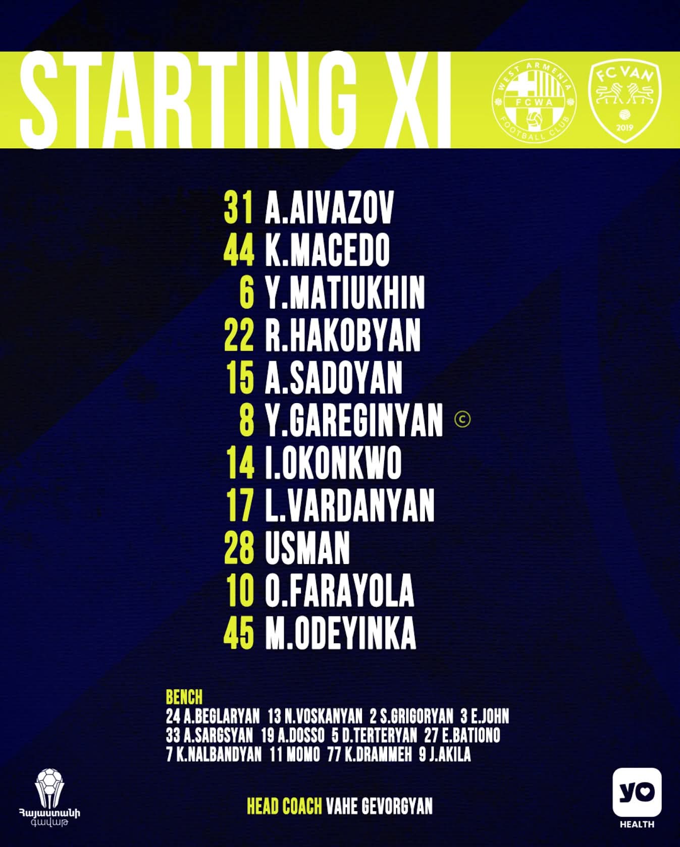 Թիմերը խաղադաշտ դուրս կգան հետևյալ կազմերով`