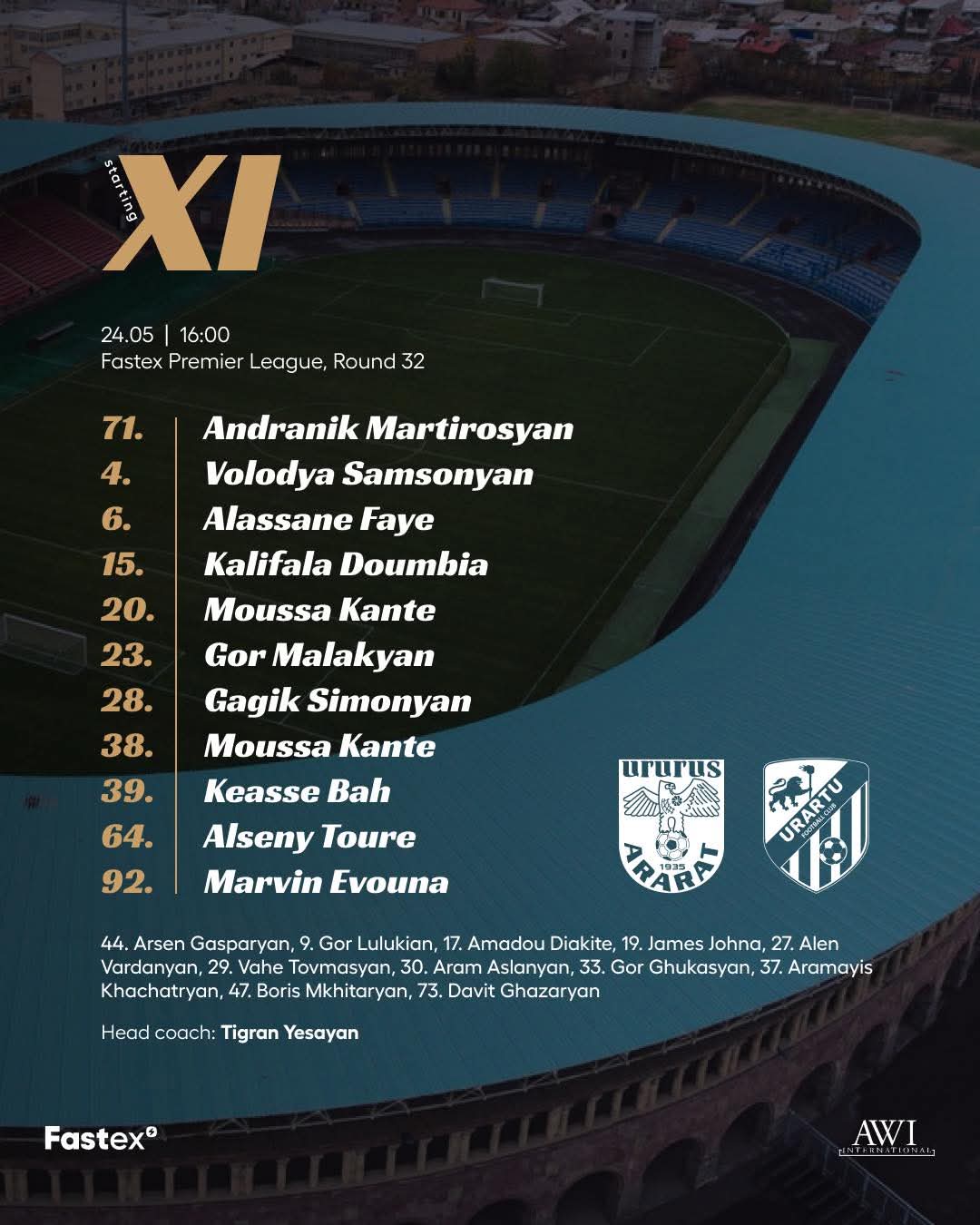 Ֆաստեքս Պրեմիեր լիգայի 32-րդ տուրի շրջանակում` Տիգրան Եսայանի «Արարատը» «Հանրապետական» մարզադաշտում կընդունի «Ուրարտու»-ին: